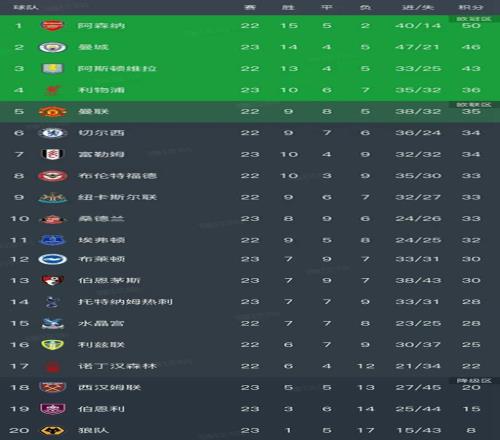 英超第23轮结束了5场比赛,最新积分榜如下!
