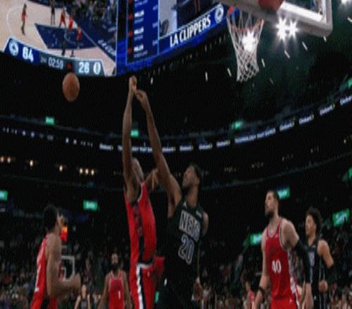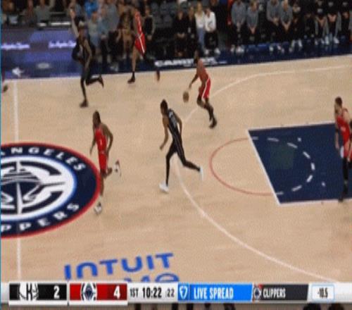 开场哈登的第一攻,就被克拉克斯顿帽掉