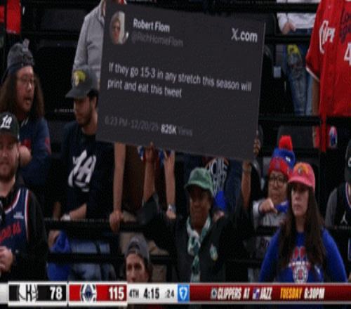 今天,快船球迷把这个推文打印出来带到了现场