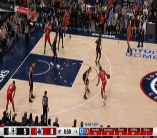 哈登负责控场,柯林斯在禁区活力十足