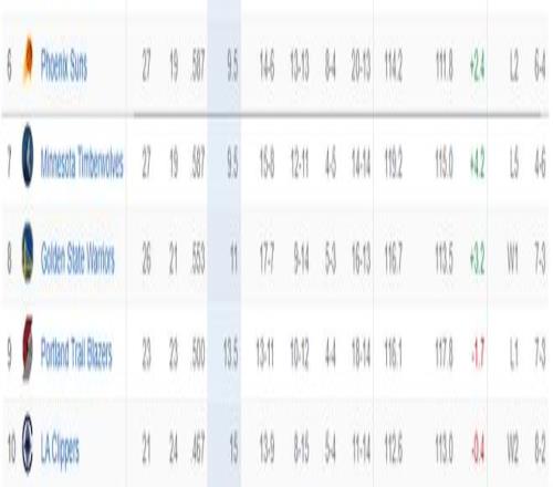 快船目前21胜24负,太阳27胜19负,快船距离西部第六也只有4.5个胜场,感觉快船本赛季依旧有希望去冲击西部前六,勇士、开拓者、森林狼等球队被快船反超感觉只是时间问题。