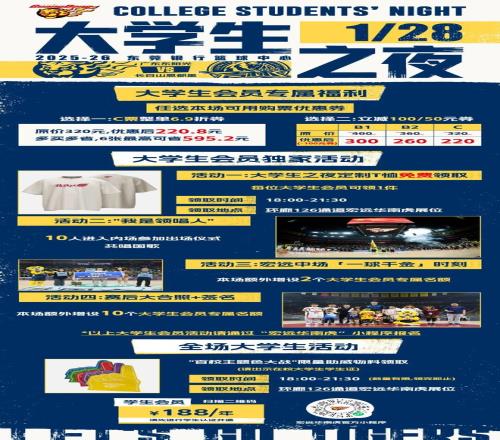 春节前,球队仅剩最后2个主场比赛:1月28日对阵吉林2月3日对阵上海,都将有丰富的“主题之夜”活动!欢迎球迷朋友们共赴现场!