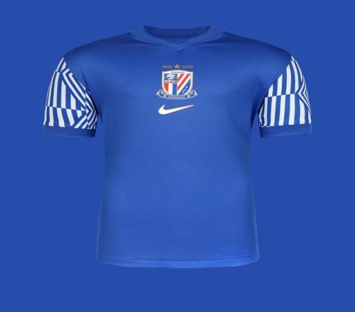 上海海港的新款主场球衣依以红色作为主色调,领子下方增加一枚金色盾牌。这个特别配饰是冠军队伍的象征,赞助商首次使用这种类型的设计。金色的盾牌中间有一个以中超冠军奖杯——火神杯为设计灵感的徽章,下面标有夺冠年份,这是中超“冠军配置”球衣。